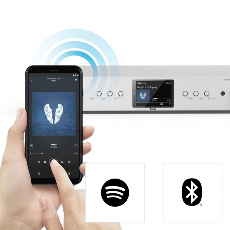 Hama digitálne a internetové rádio DIT2105SBTX, Hi-Fi tuner, DAB+/FM/BT RX-TX, App, strieborné