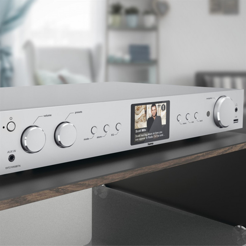 -7% Hama digitálne a internetové rádio DIT2105SBTX, Hi-Fi tuner, DAB+/FM/BT RX-TX, App, strieborné