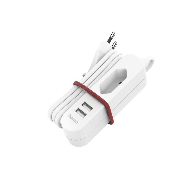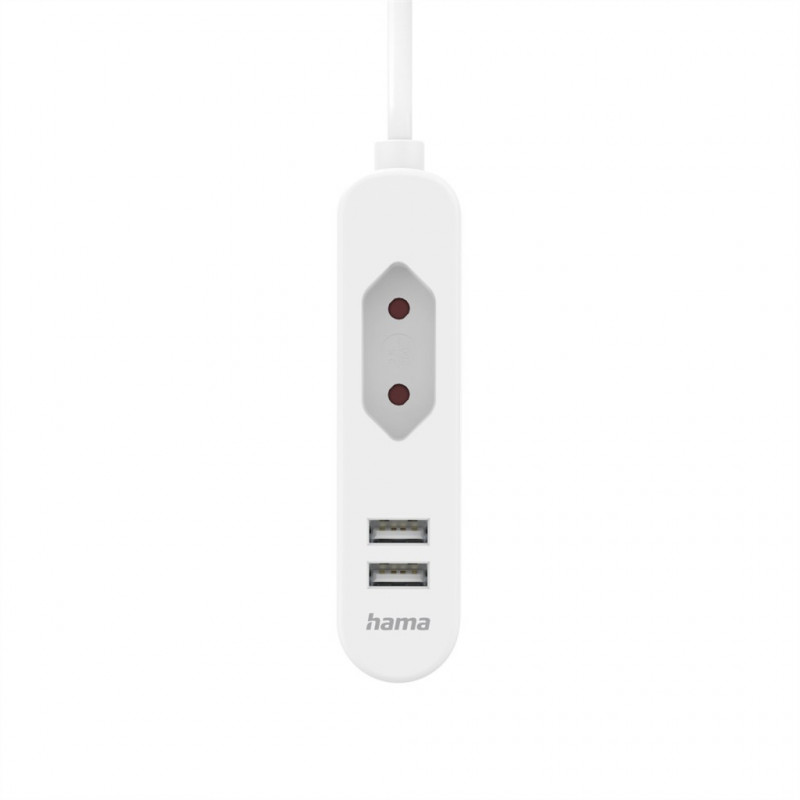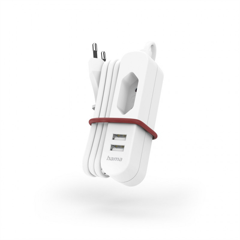 Hama sieťová nabíjačka s predlžovacím káblom, 2x USB-A, 1x el. zásuvka Euro, 1,9 m