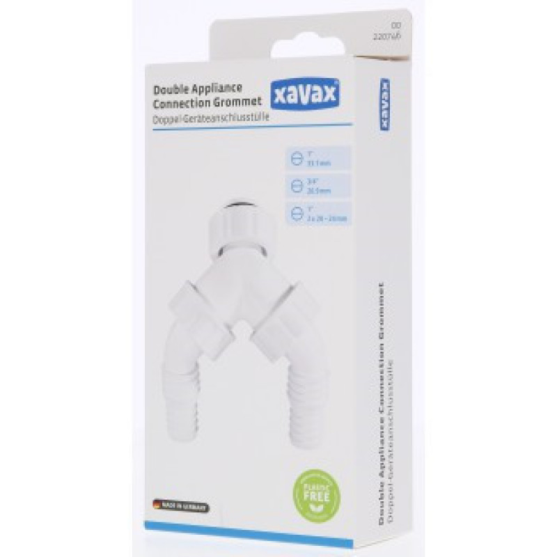 Xavax sifónová rozdvojka 1 na 2x 3/4, pre 2 odtokové hadice k 1 sifónu, spätný ventil, tesnenie