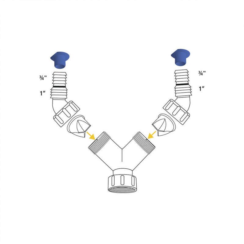 - 1 sifónový adaptér 1" na 2x 3/4", s tesnením