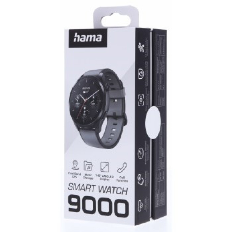 Hama 9000, smart hodinky, GPS, AMOLED 1,43, funkcia telefonovania, úložisko hudby, AI hlas.asistent