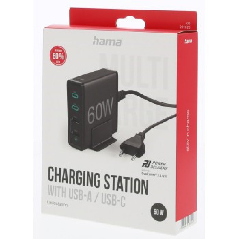 Hama rýchla stolná USB nabíjačka so stojančekom, 2x USB-C PD/QC, 2x USB-A, 60 W