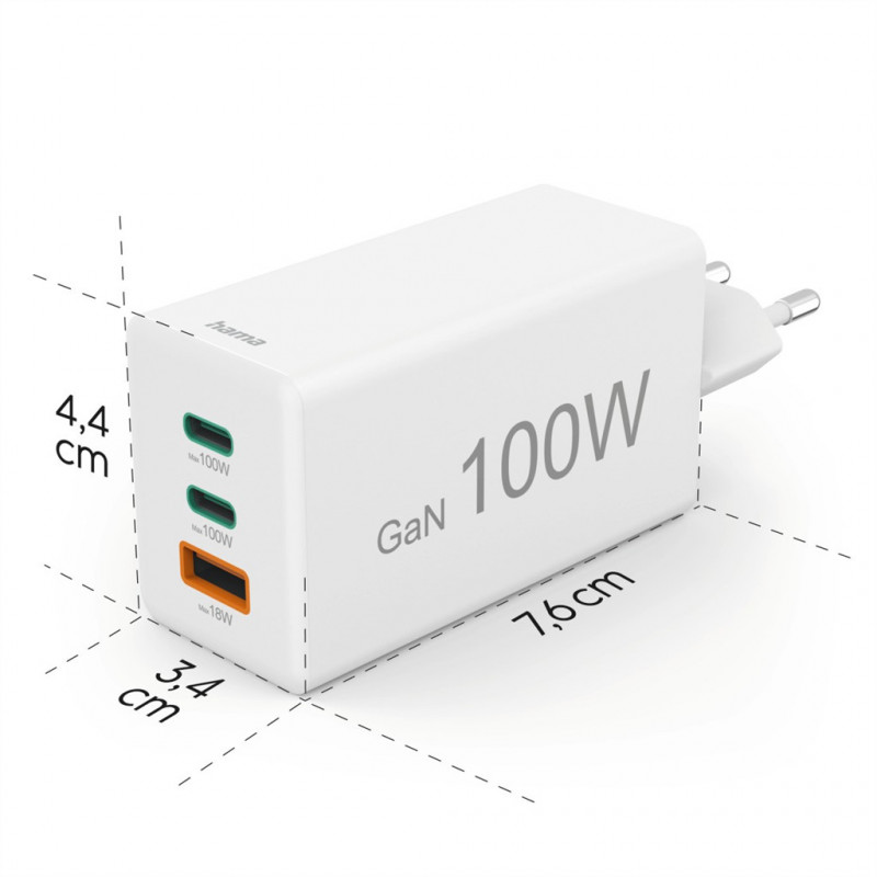 Hama rýchla USB nabíjačka GaN 2x USB-C + USB-A, PD/QC, 100 W