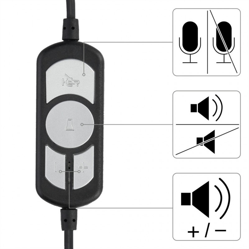 - kancelársky stereo headset s nastaviteľným ramenom mikrofónu a USB-A pripojením