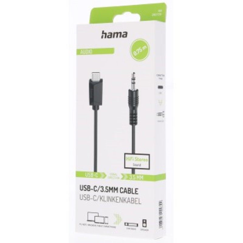 Hama audio adaptérový kábel USB-C na jack 3,5 mm, aktívny, 0,75 m