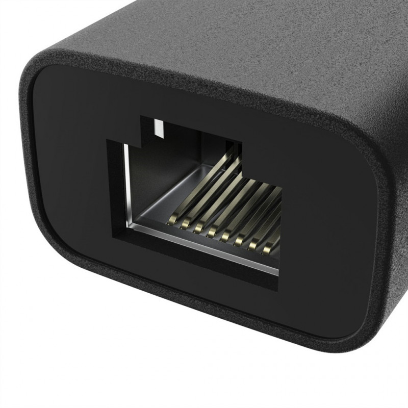 - umožňuje využiť USB-C zásuvku počítača pre pripojenie do siete LAN (napr. k routeru/modemu)