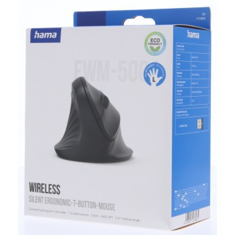 -14% Hama vertikálna ergonomická bezdrôtová myš EWM-500L, pre ľavákov, čierna
