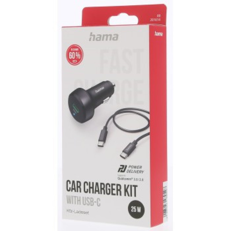 Hama set: rýchla USB nabíjačka do vozidla USB-C PD/QC 25 W + kábel USB C-C 1 m