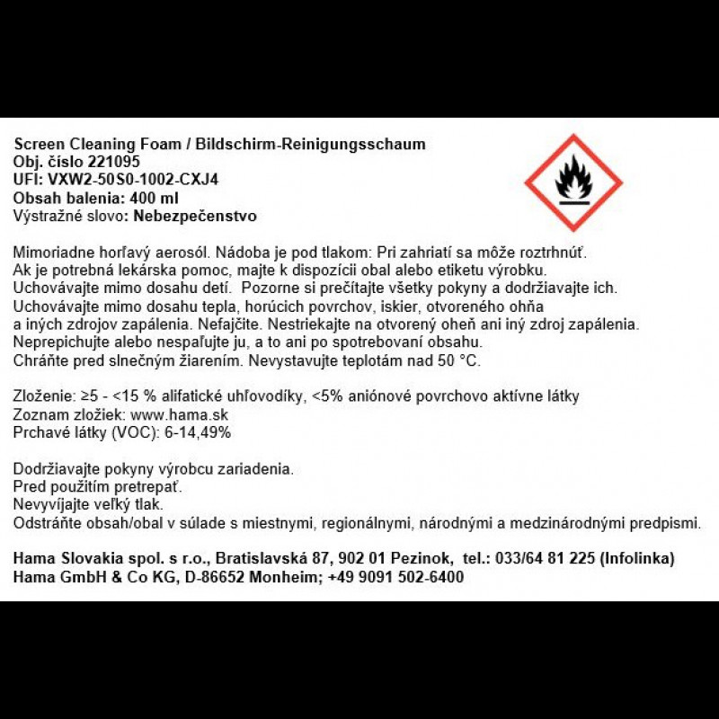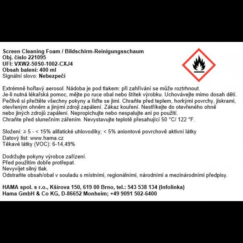 - jemná čistiaca pena obzvlášť vhodná pre citlivé povrchy plochých obrazoviek (LCD, LED, OLED, TFT)