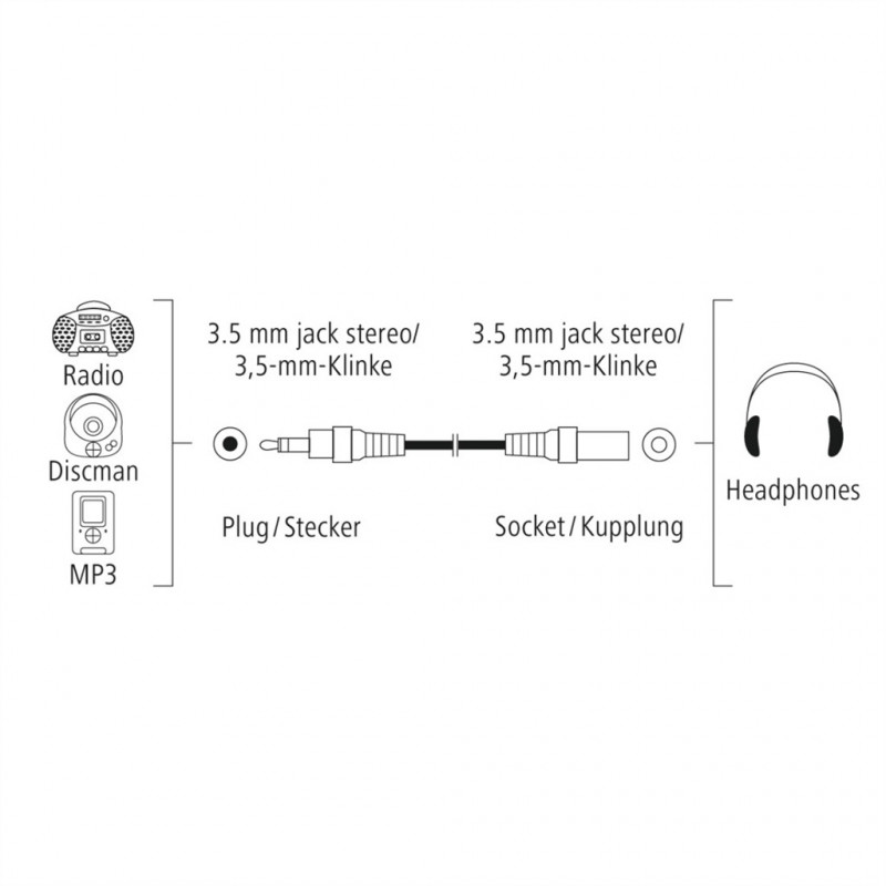 - kábel pre prenos analógového audio stereo signálu, napr. pre predĺženie kábla slúchadiel